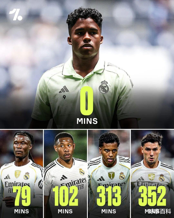 但阿隆索的到来彻底改变了局面。受肌肉伤病困扰,恩德里克错失了世俱杯的比赛。再加上皇马锋线竞争异常激烈——维尼修斯、姆巴佩、罗德里戈、迪亚斯、马斯坦托诺、贡萨洛-加西亚——巴西小将彻底失去了位置。本赛季,他5次进入大名单(4场联赛、1场欧冠),却没能获得1次登场机会。